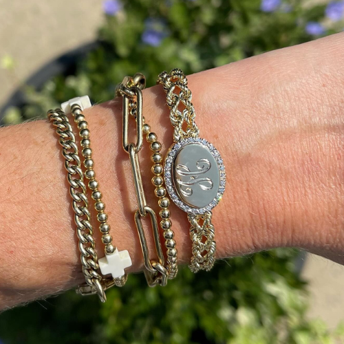 A beloved but irreparable watch was given a second life. By replacing the watch crystal with a beautifully hand-engraved initial, this sentimental piece was transformed into an elegant bracelet, ensuring its cherished memory lives on in a new form.