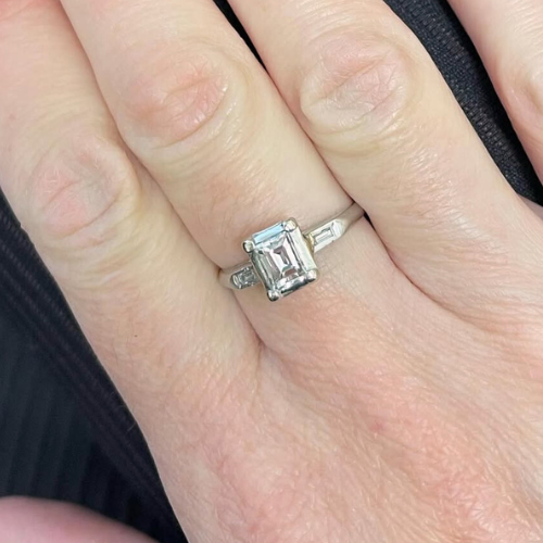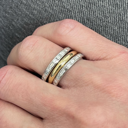 What began as a single, worn-out diamond ring has been transformed into two versatile baguette diamond rings. These new designs can be mixed, matched, and stacked with other rings, breathing new life into a cherished piece.